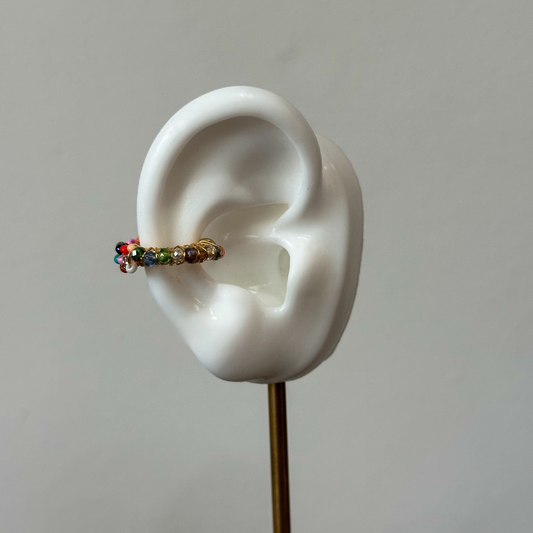 Handmade Gold-Filled Ear Cuff with Semiprecious Beads | No Piercing - Multicolor Twin