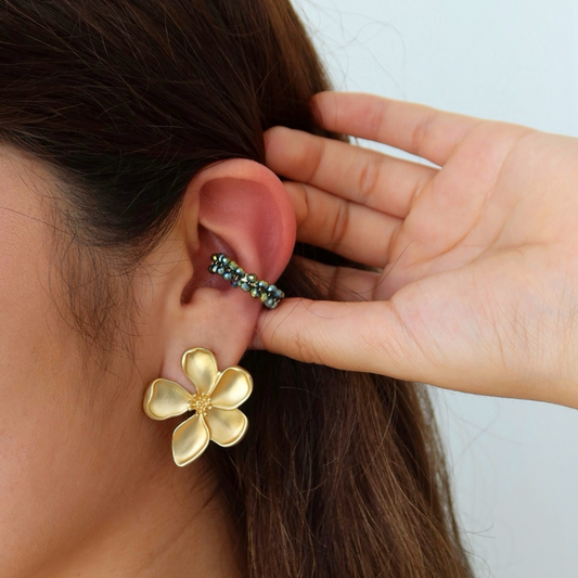 Handmade Gold-Filled Ear Cuff with Semiprecious Beads | No Piercing - Flower Power