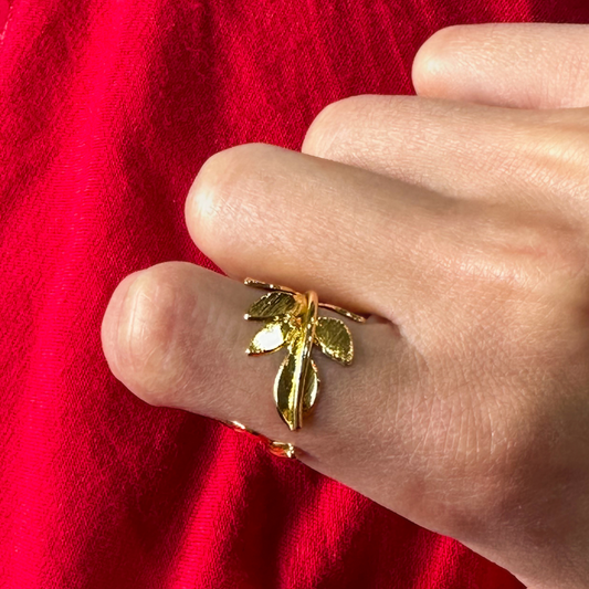 Handmade Delicate Two-Leaf Open Ring | 24k Gold Plated Bronze