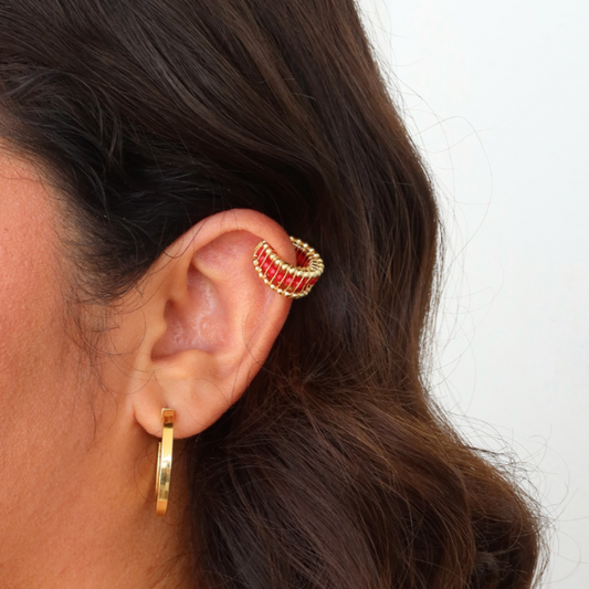 Handmade Gold-Filled Ear Cuff with Semiprecious Beads | No Piercing - We’re Breakin’ Free Red